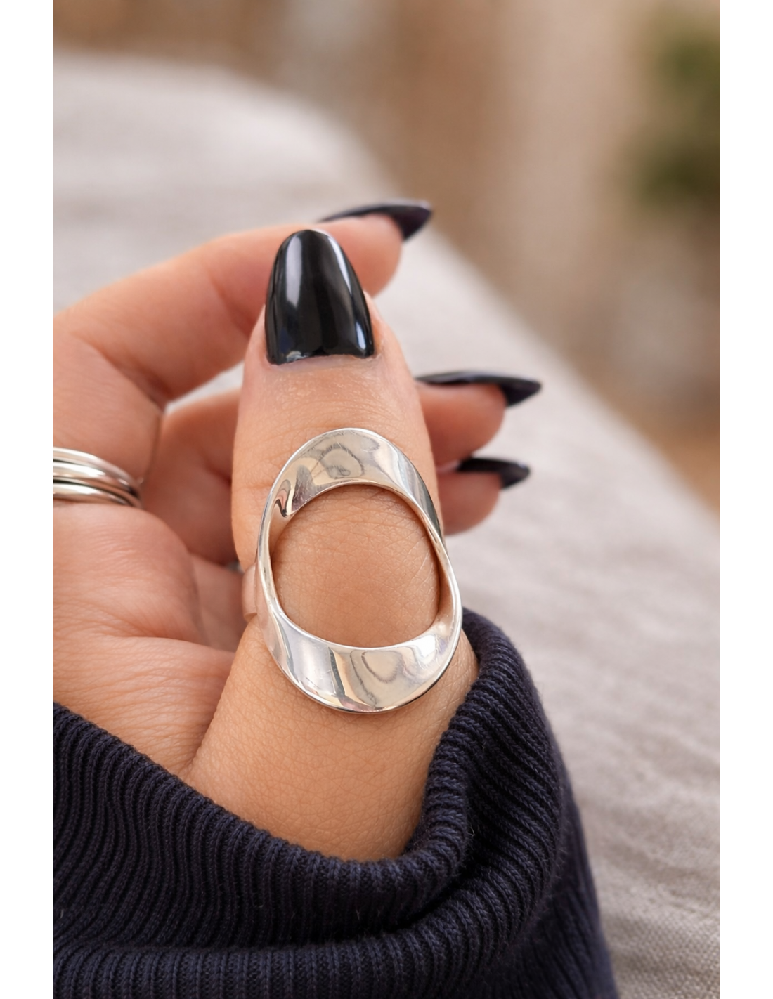 Anillo en plata 925 ancho en el centro calado ovalado