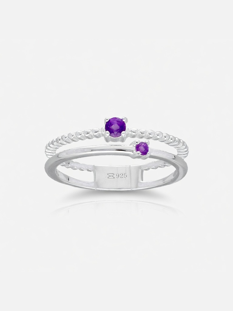 Anillo en plata 925 doble con 2 amatistas, trenzado y liso