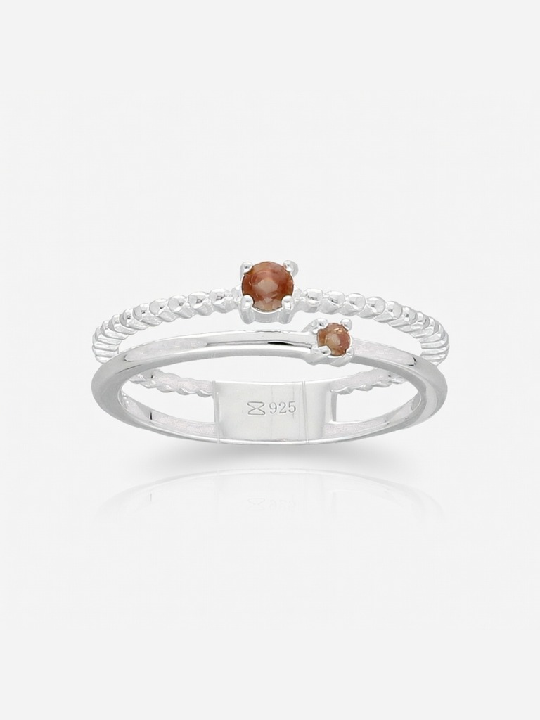 Anillo en plata 925 doble con 2 citrinos, trenzado y liso