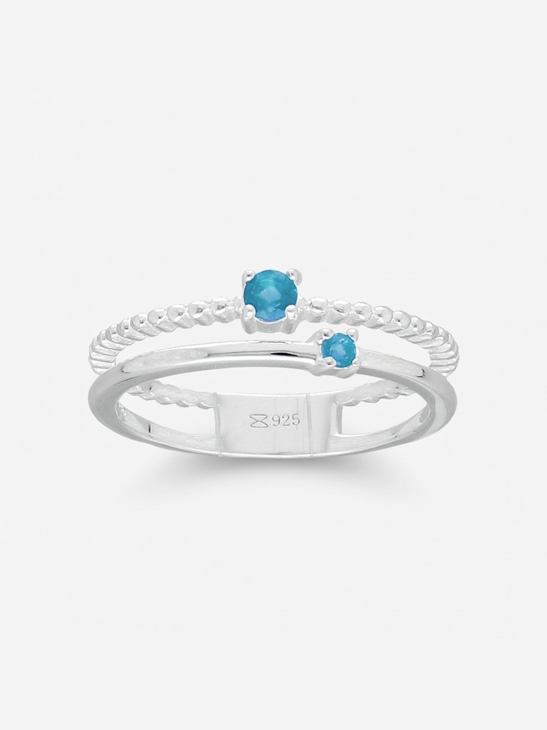 Anillo en plata 925 doble con 2 topacios celestes, trenzado y liso
