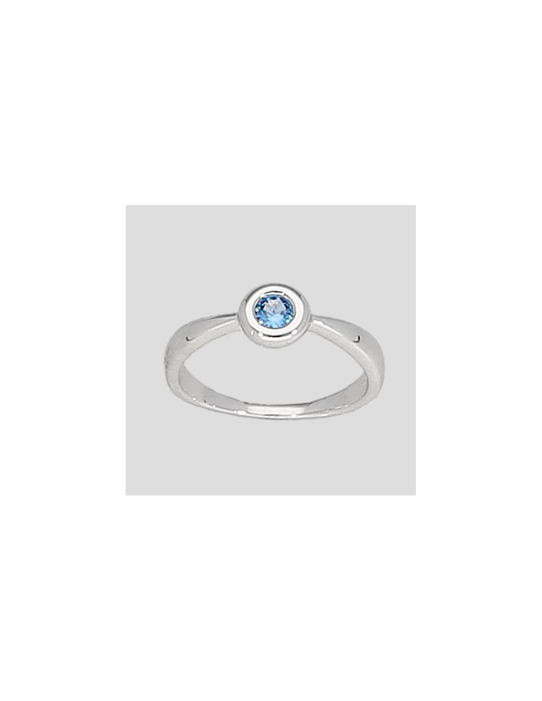 Anillo en plata 925 solitario con engarce inglés y zirconias azul clara