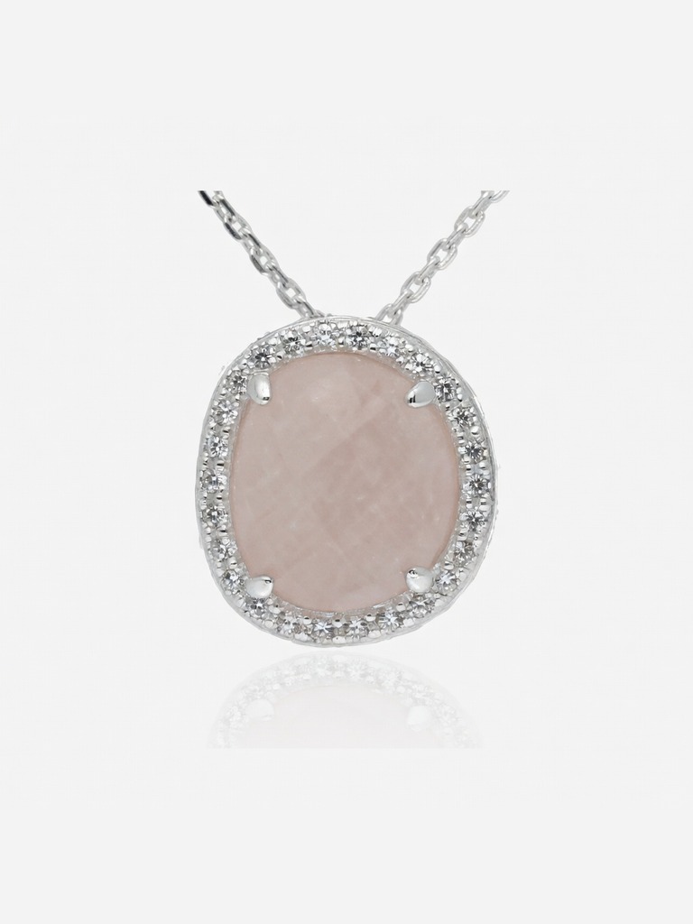 Conjunto en plata 925 con cuarzo rosa facetado y zirconias