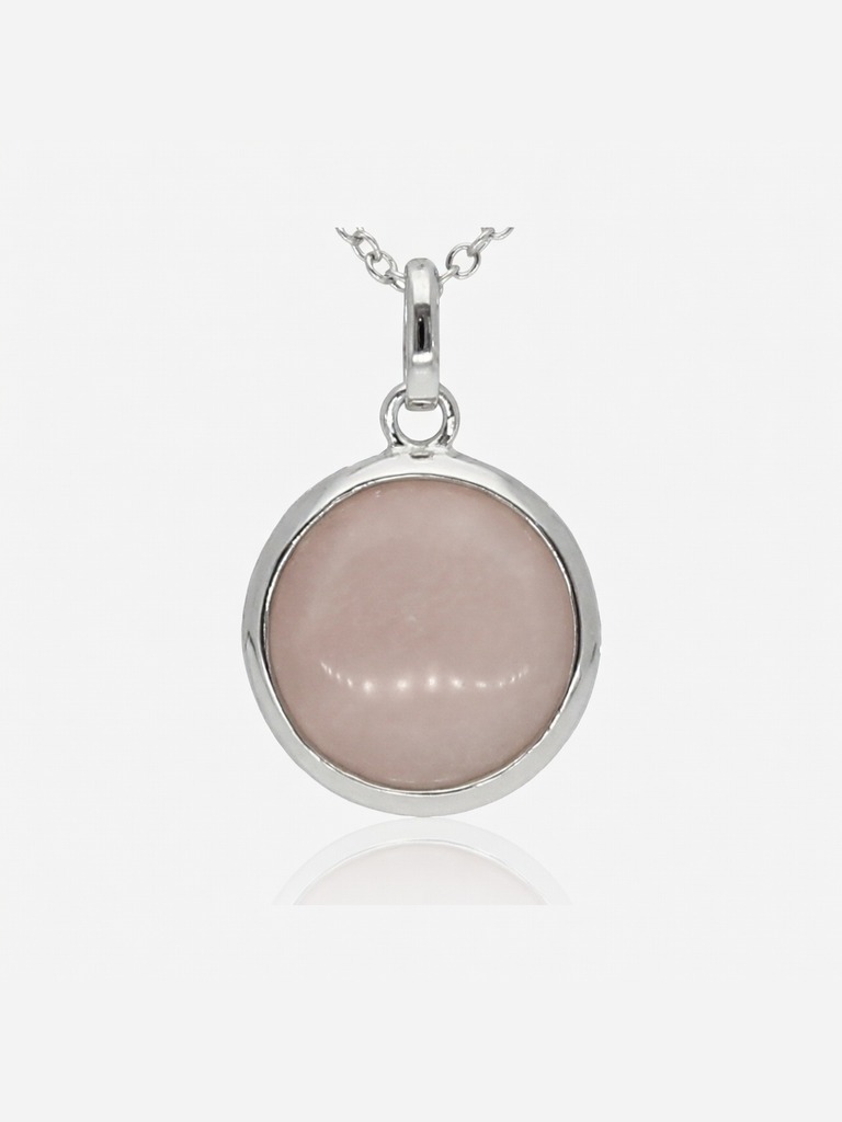 Conjunto en plata 925 con cuarzo rosado natural bombe redondo