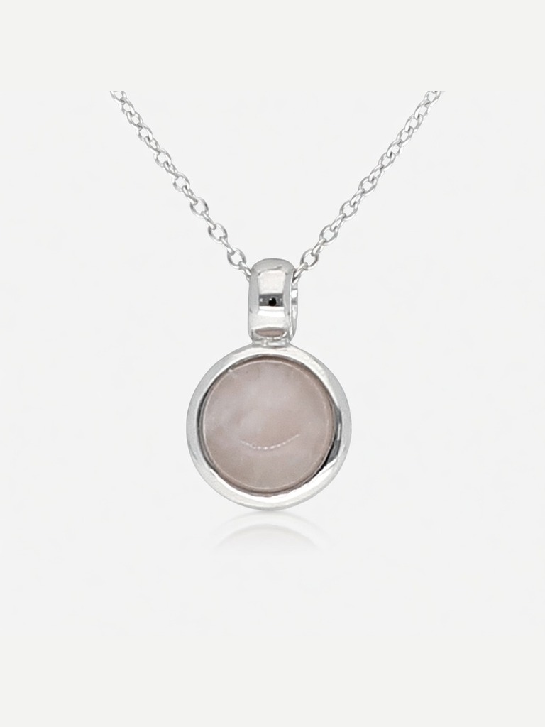 Conjunto en plata 925 con dije y cuarzo rosado bombeado redondo