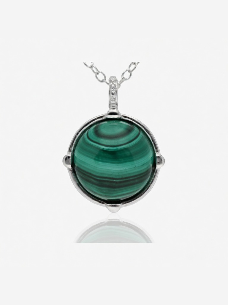Conjunto en plata 925 con malaquita de 10 mm y engarce de 4 puntas