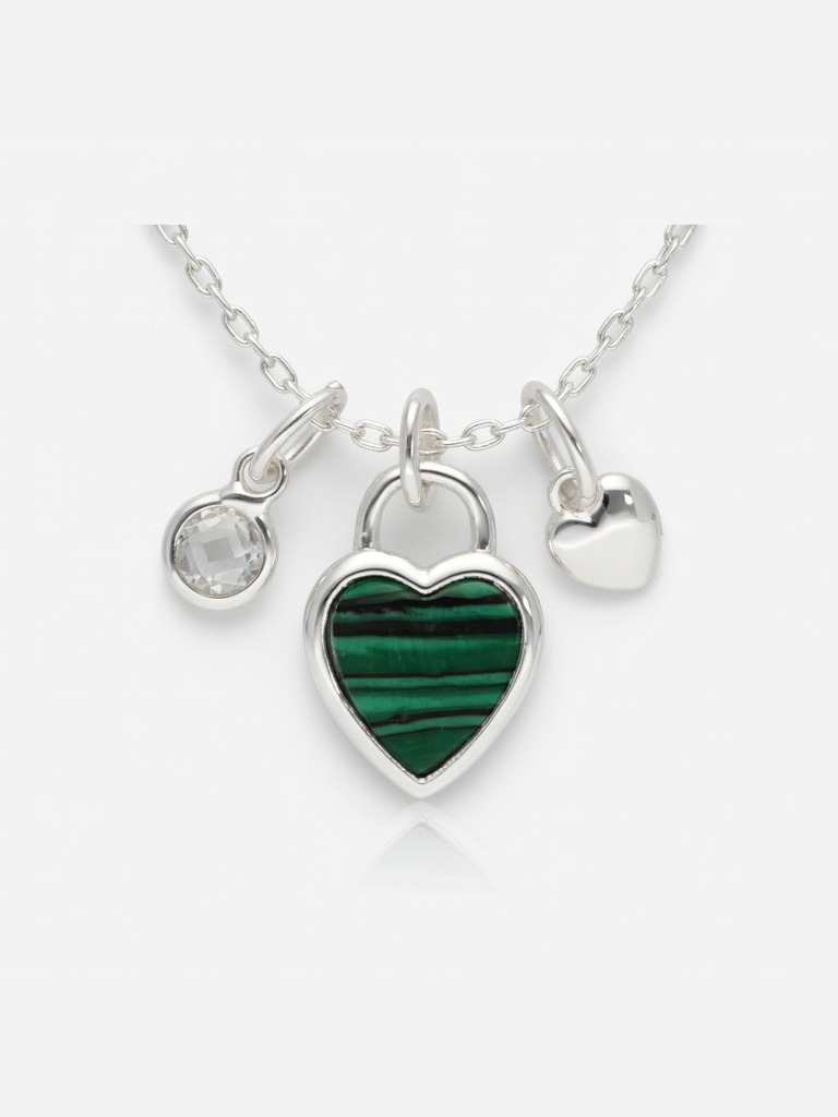 Conjunto en plata 925 corazón con malaquita y dije con piedra y corazón