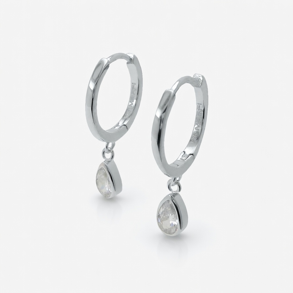 Caravanas aros en plata 925 aro 13 mm con zirconias lágrima colgante