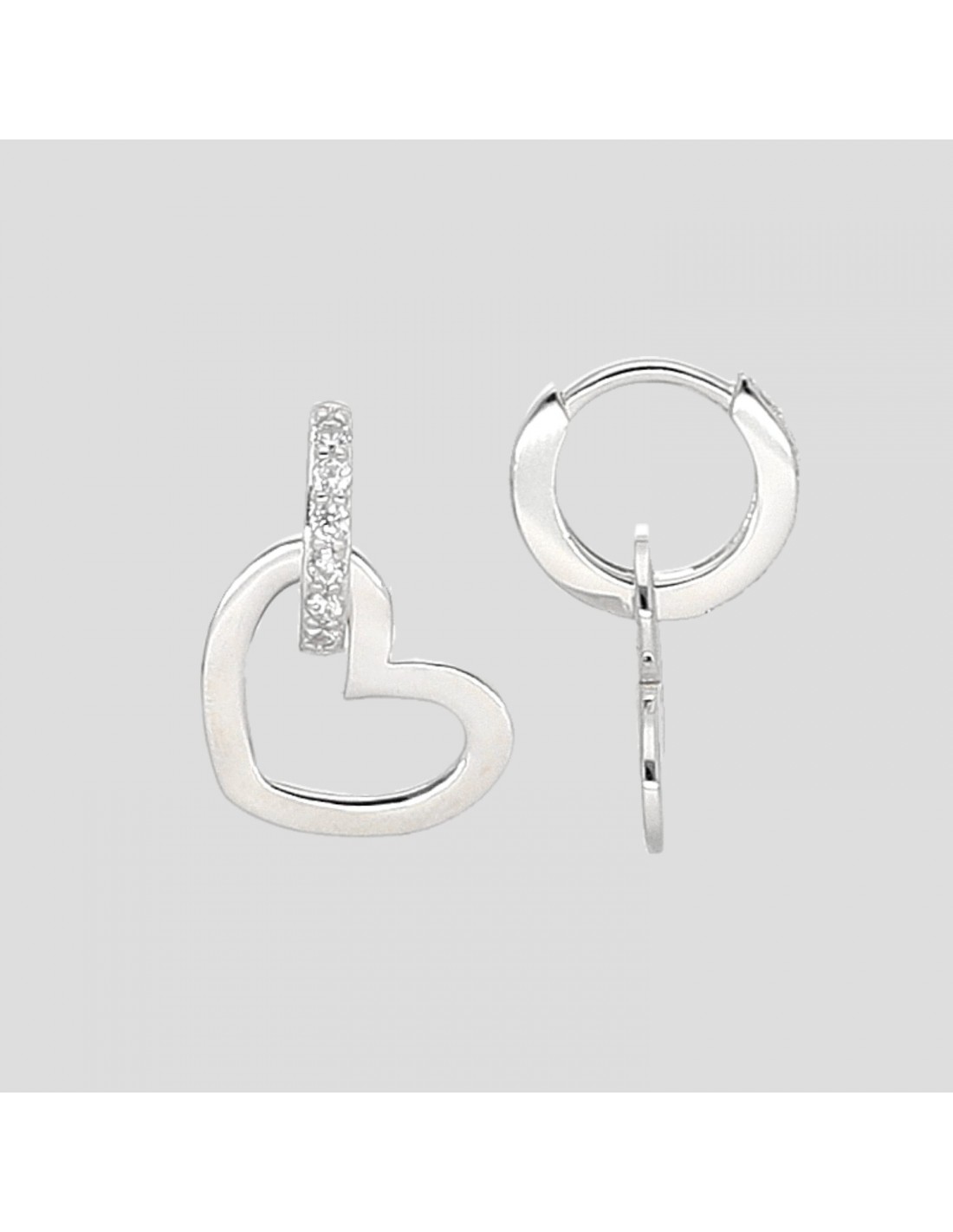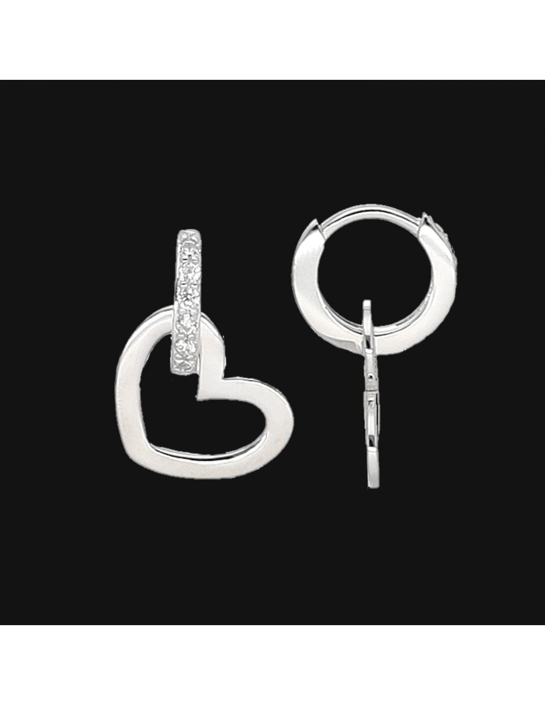 Caravanas aros en plata 925 aro 8 mm con zirconias y corazón pasante calado