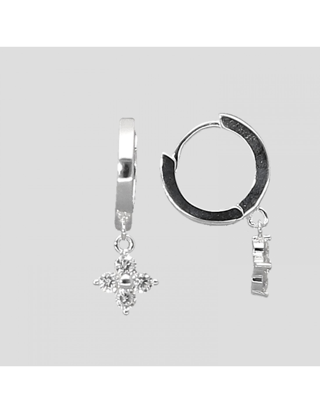 Caravanas aros en plata 925 aro 9 mm ancho con dije flor con zirconias