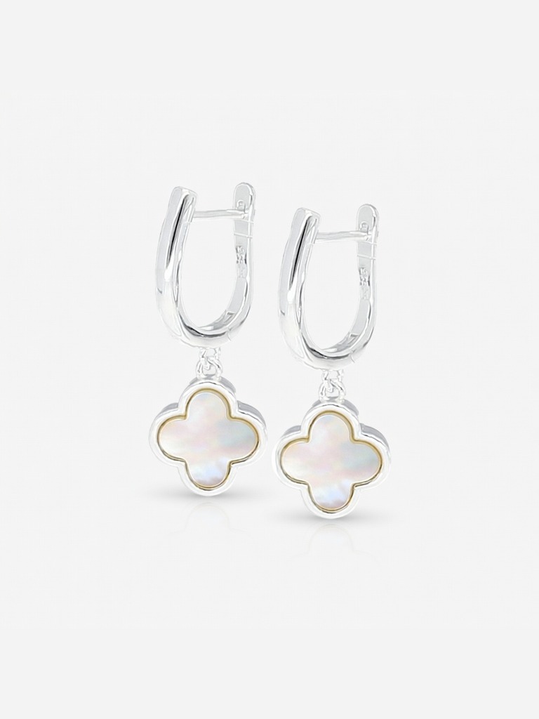Caravanas aros en plata 925 aro tipo van cleef en nácar de 8 mm cuelga