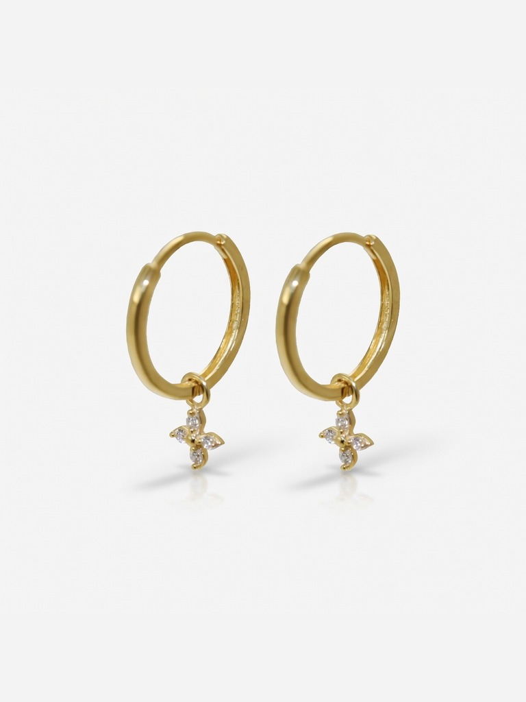 Caravanas en oro 9K aro con flor y zirconias