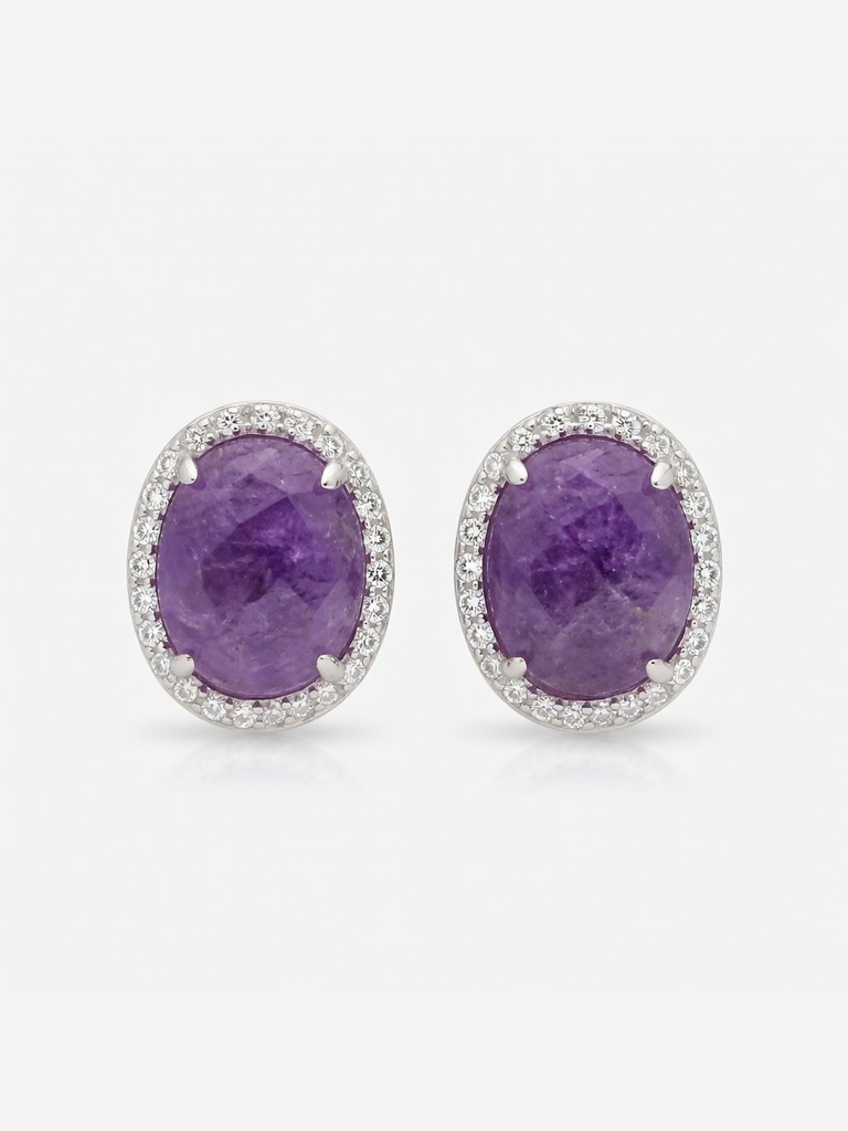 Caravanas en plata 925 con amatista facetada de 10 mm y zirconias
