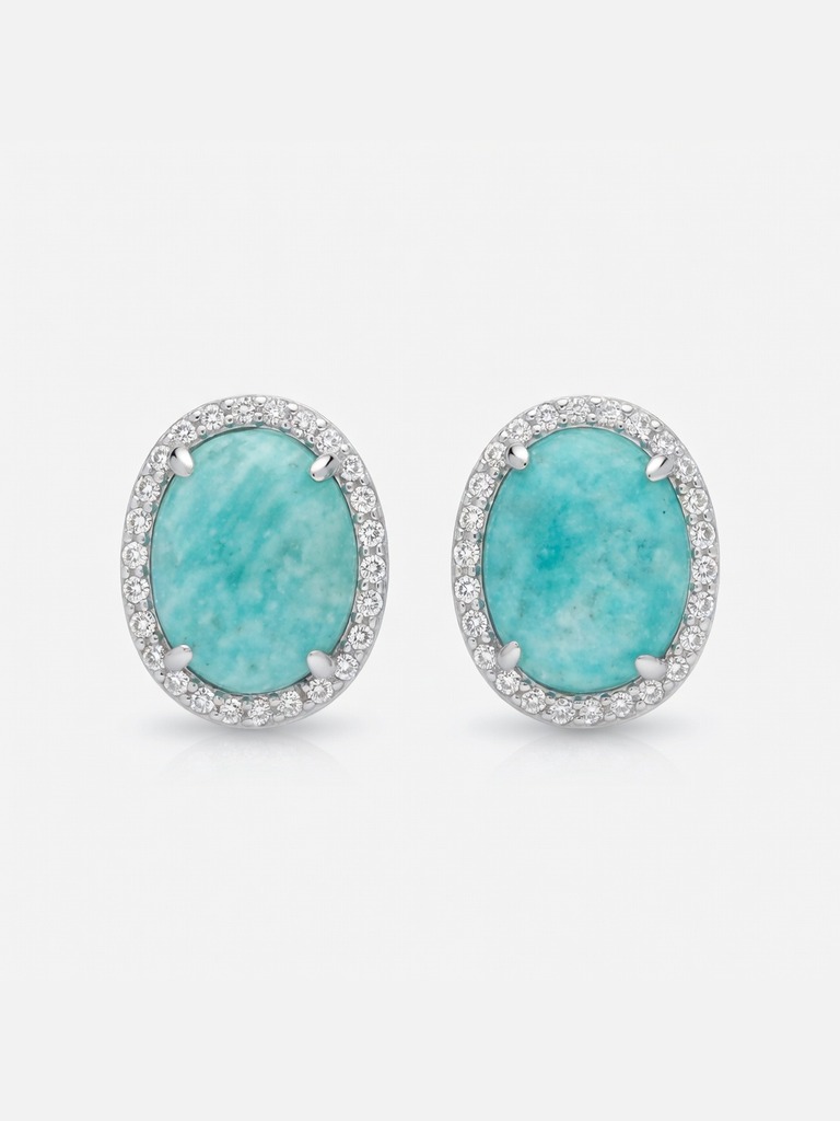 Caravanas en plata 925 con amazonita facetada de 10 mm y zirconias