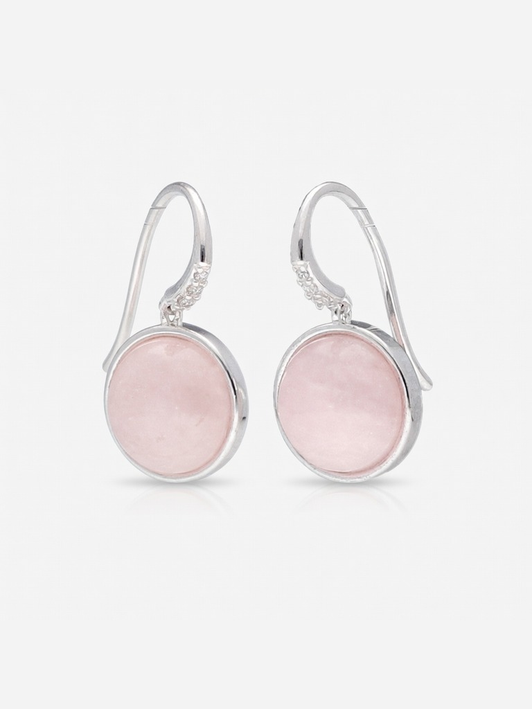 Caravanas en plata 925 con cuarzo rosa natural de 10 mm y zirconias