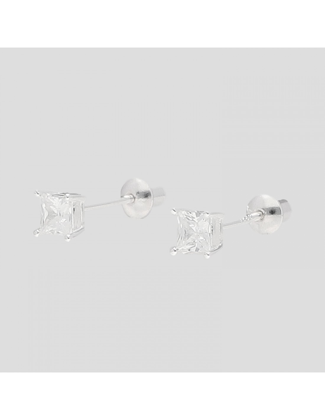Caravanas en plata 925 con engarce 4 puntas cuadrada con rosca 3.5 mm