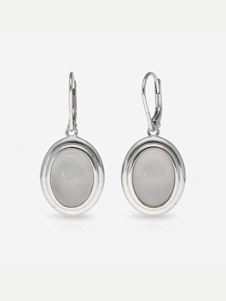 Caravanas en plata 925 con piedra lunar oval 20 x 10 mm cierre brisura