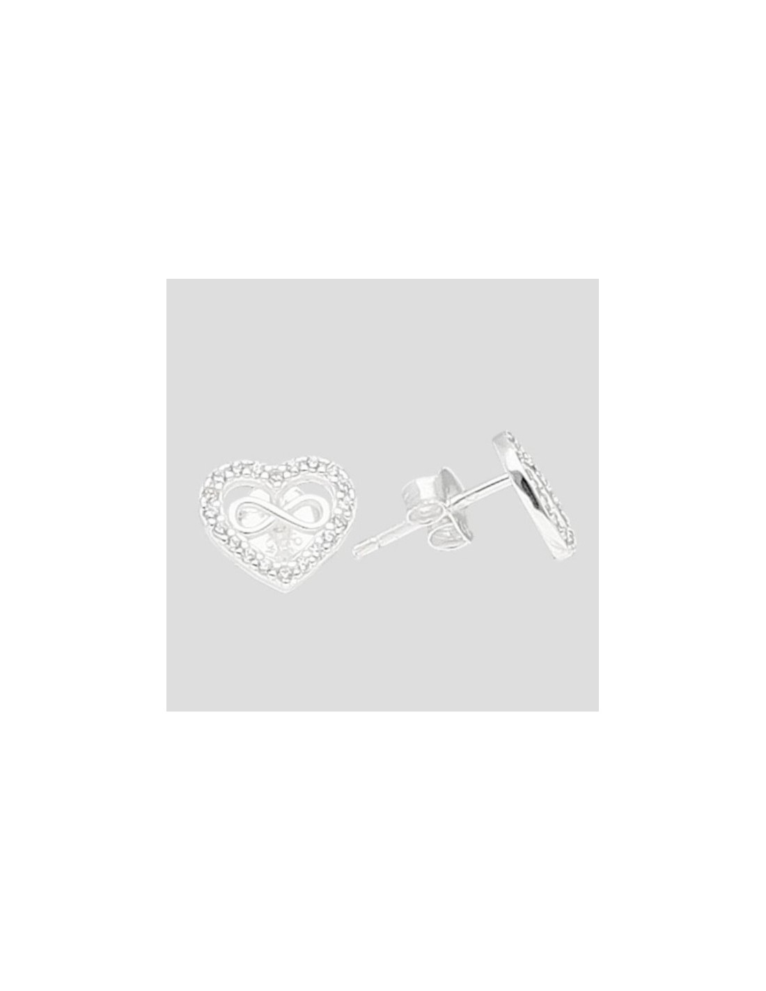 Caravanas en plata 925 corazón calado con zirconias e infinito liso en el centro
