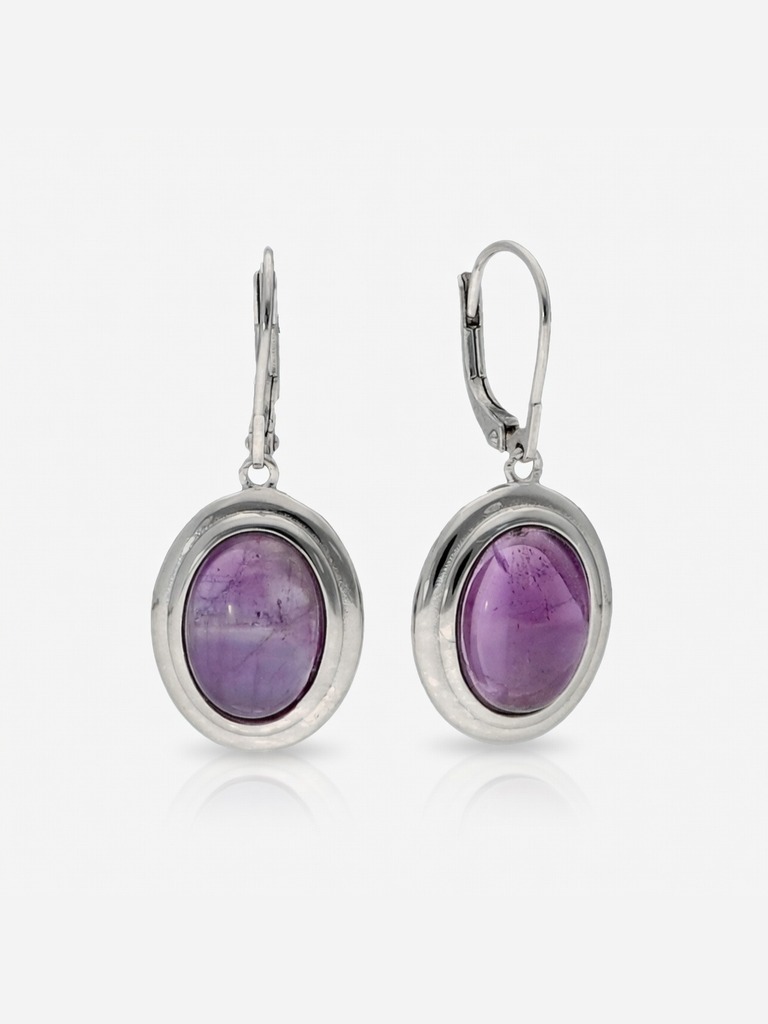 Caravanas en plata 925 torcidas con amatista 20 mm x 10 mm y cierre brisura