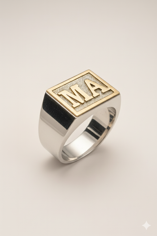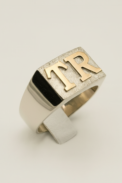 • Anillo sello con iniciales personalizado unisex en plata y oro 14 x 16