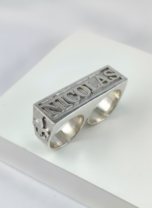 • Anillo sello doble macizo en plata 925 – 13 x 45 mm