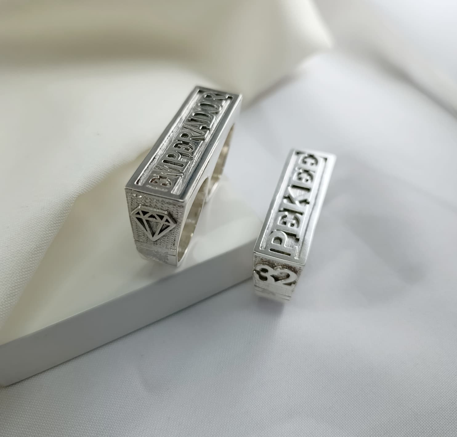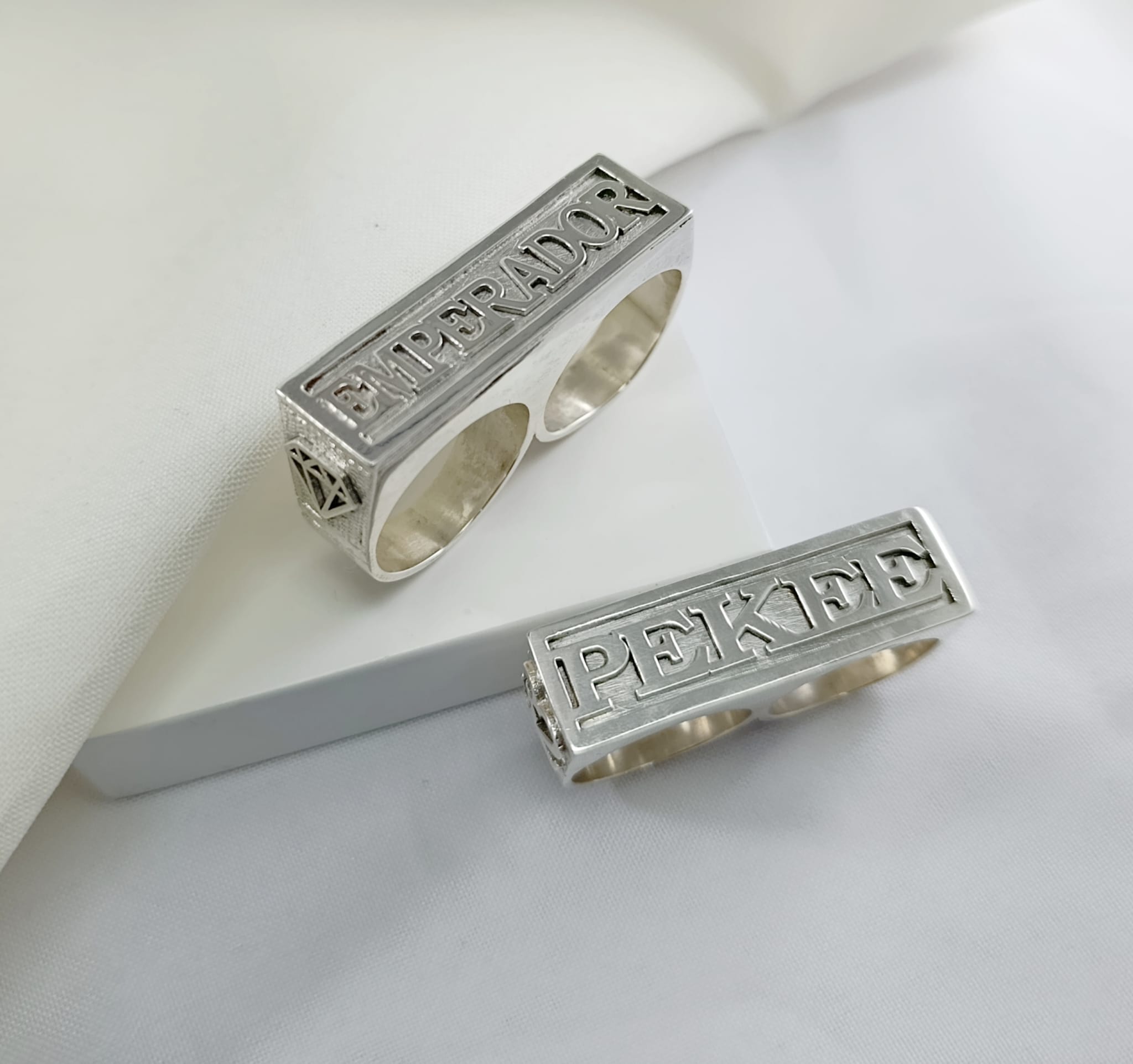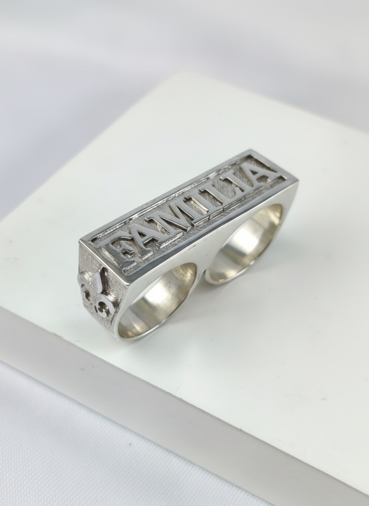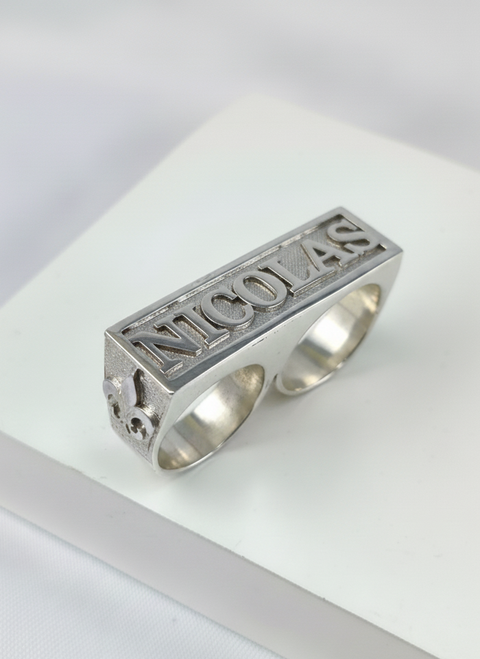 Anillo sello doble macizo en plata 925 – 13 x 45 mm