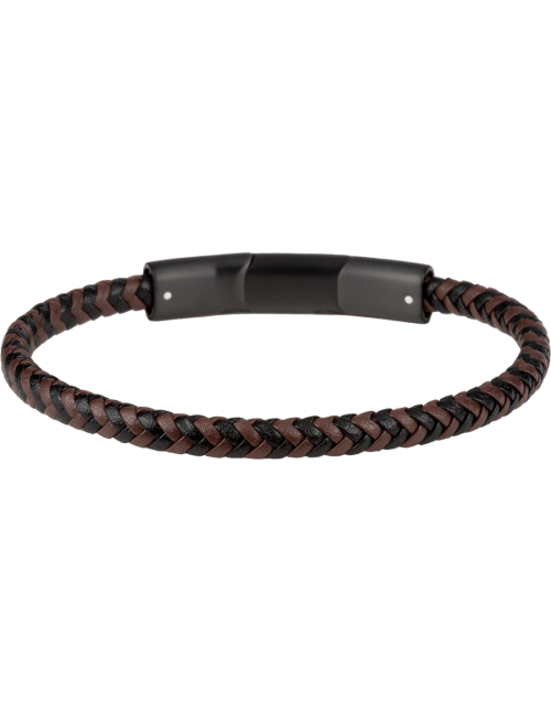 Pulsera de cuero trenzado y acero Frank 1967 York – Negro