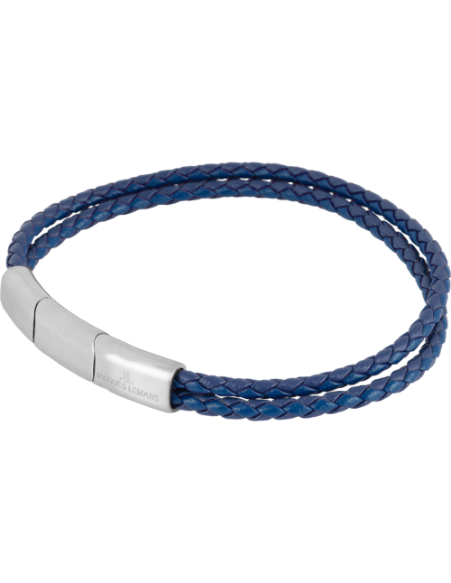 Pulsera de cuero trenzado refinado y acero Frank 1967 Manchester – Azul