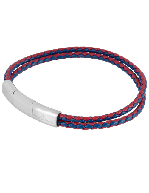 Pulsera de cuero trenzado y acero Frank 1967 York – Azul