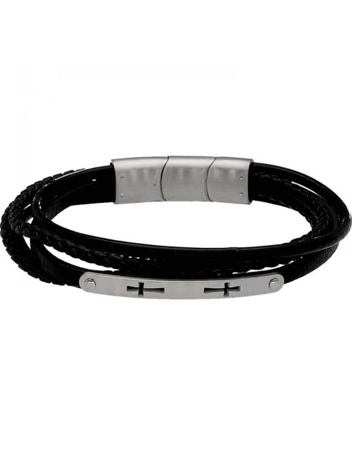 Pulsera de cuero de cuatro tiras y acero Frank 1967 Winchester – Negro