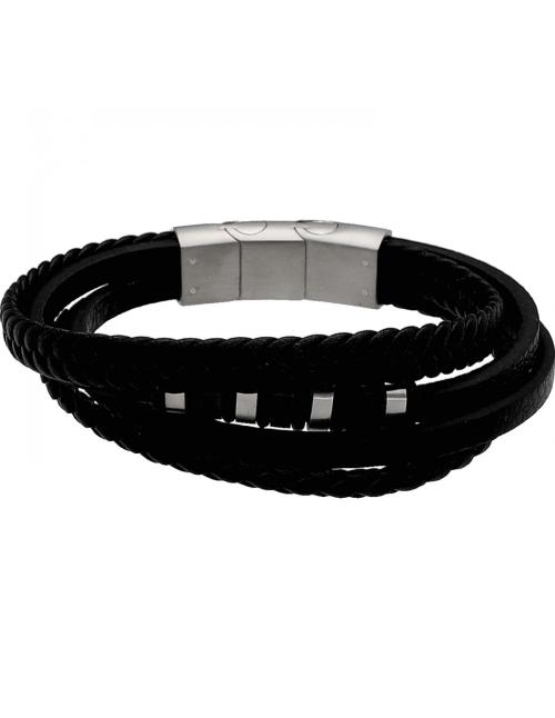 Pulsera de cuero y acero Frank 1967 Bristol – Negro