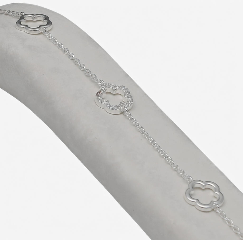 Pulsera en plata 925 con 3 flores tipo van cleef y zirconias