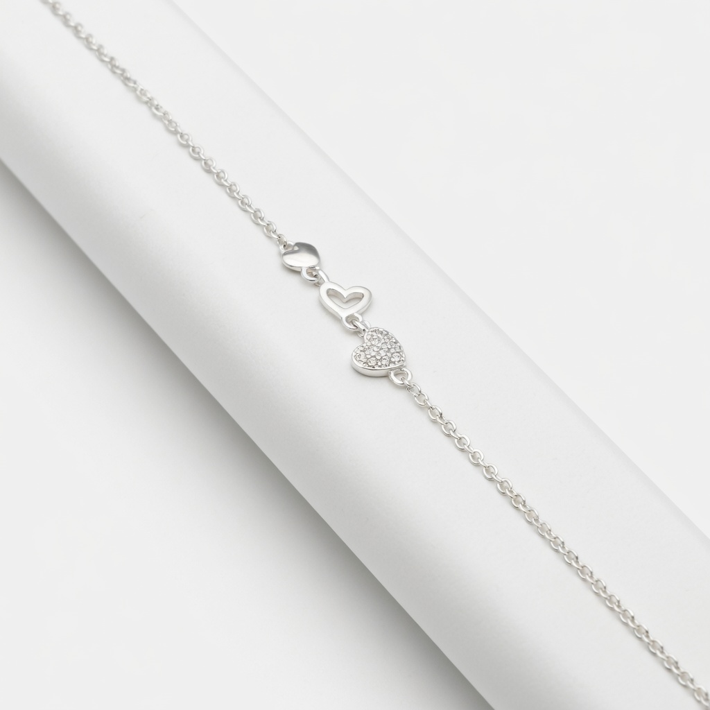 Pulsera en plata 925 con corazones chicos y zirconias