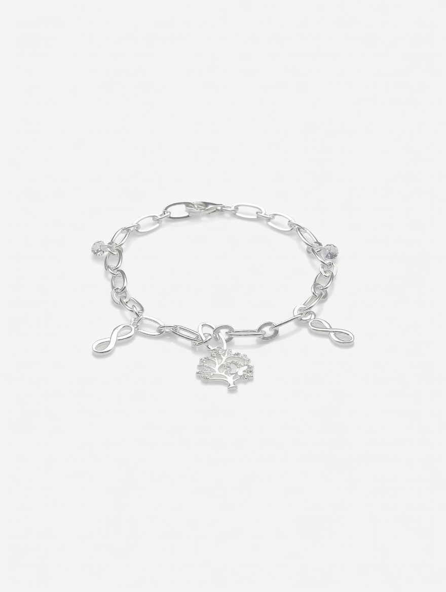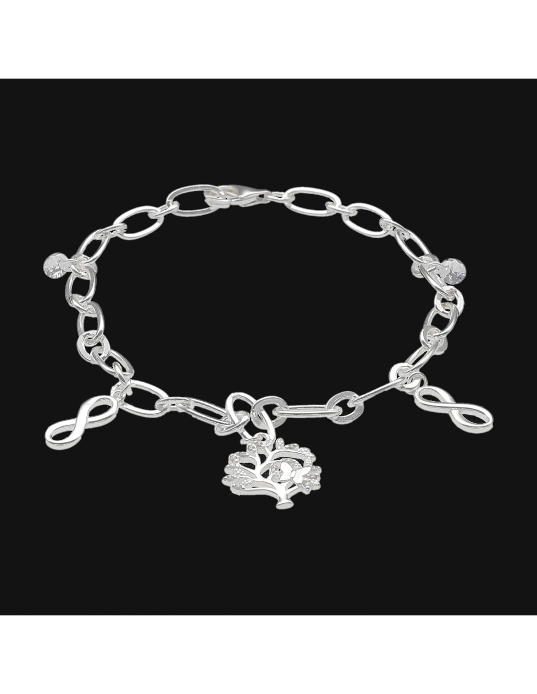 Pulsera en plata 925 eslabones grande con árbol de la vida central y dos infinitos
