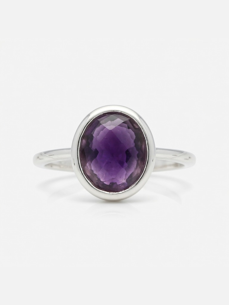 Anillo en plata 925 solitario con amatista facetada con engarce inglés
