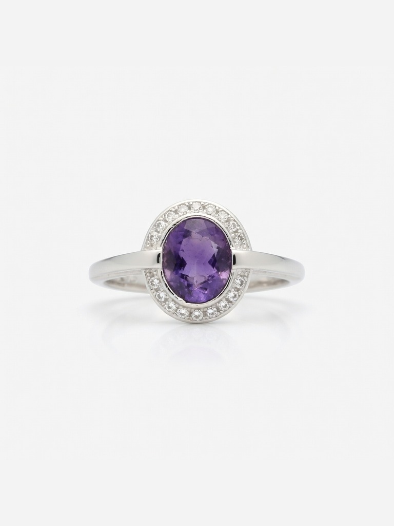 Anillo en plata 925 solitario con amatista natural cabujón y piedras
